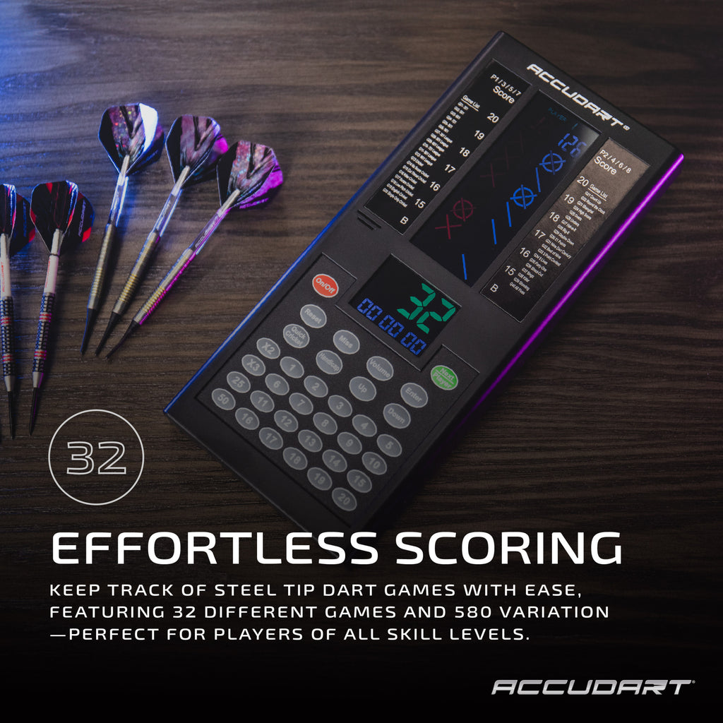 - EFFORTLESS GAME TRACKING – Easily keep score during steel tip dart matches with a user-friendly interface perfect for all ages and skill levels.