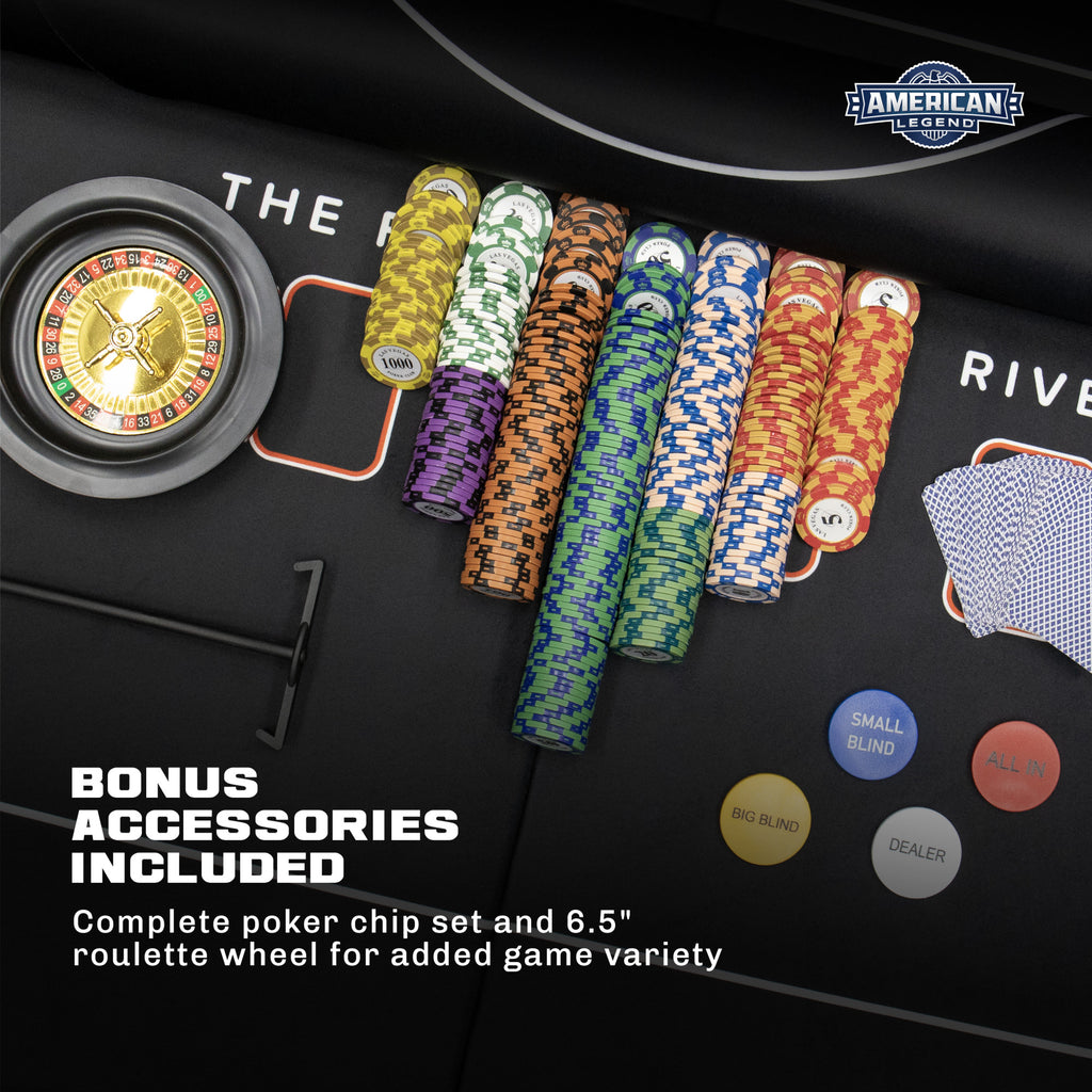 - INCLUDES BONUS ACCESSORIES – Everything you need to get started: a full poker chip set, and a 6.5” roulette wheel
