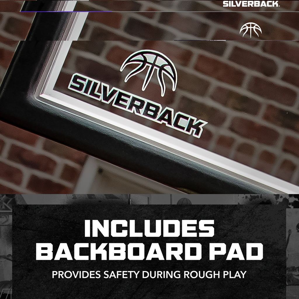 The Silverback SB54iG, our premier in-ground basketball hoop, features a tempered glass backboard and powder-coated steel pole that is directly installed into the ground and secured by concrete. The SB54iG uses a crank actuator to adjust the goal from the NBA and NCAA regulation rim height of 10 feet to the safety-approved height of 7.5 feet. The SB54iG comes complete with a pole and backboard pad to offer protection during lay-ups and a break-away rim that flexes under pressure. Backed by a 5-year limited warranty, the Silverback SB54iG is a perfect hoop system for your family.