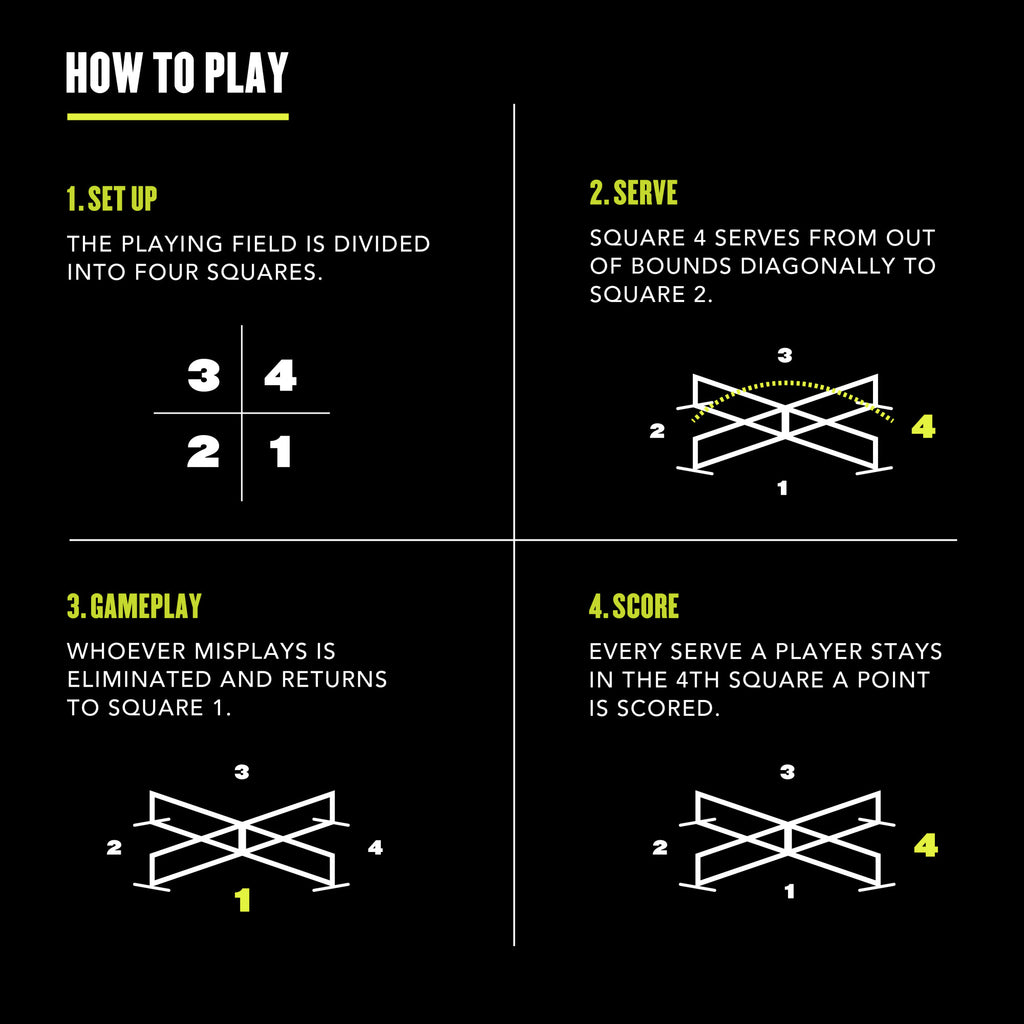 Upgrade your outdoor game setup with the 4-Square Pickleball Pro—an all-in-one pickleball and four square set built for competitive, high-energy play. Featuring Pro-level enhancements like higher density paddles, a tear-resistant net, stronger nylon components, and a regulation 36" net height, this versatile set is perfect for everything from family lawn games to intense driveway tournaments. The 20-foot-wide net easily converts between game modes, while the durable metal frame and tool-free assembly make it ideal for hard surfaces like blacktops, gym floors, and driveways. Whether you're hosting a backyard game night, leading PE class, or practicing pickleball fundamentals, the 4-Square Pro delivers fast setup, portable convenience, and long-lasting fun for all ages.
